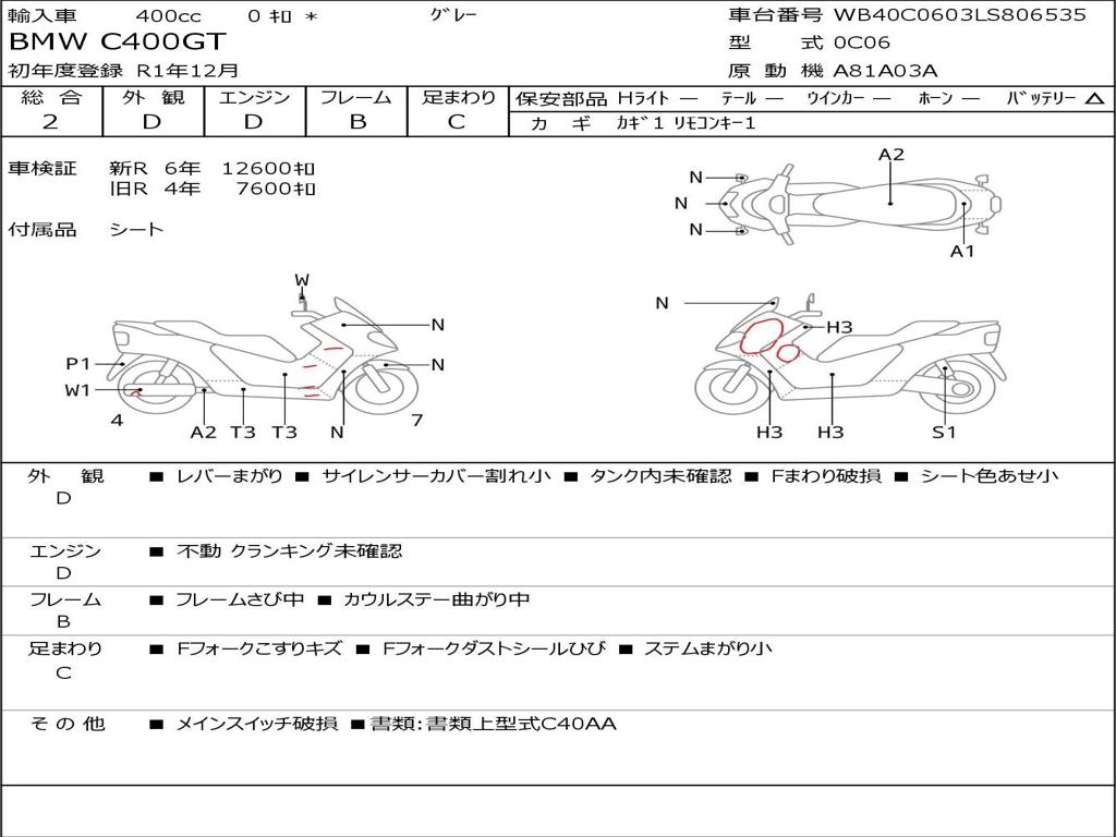 | Номер рамы / VIN | WB40C0603LS806535 |