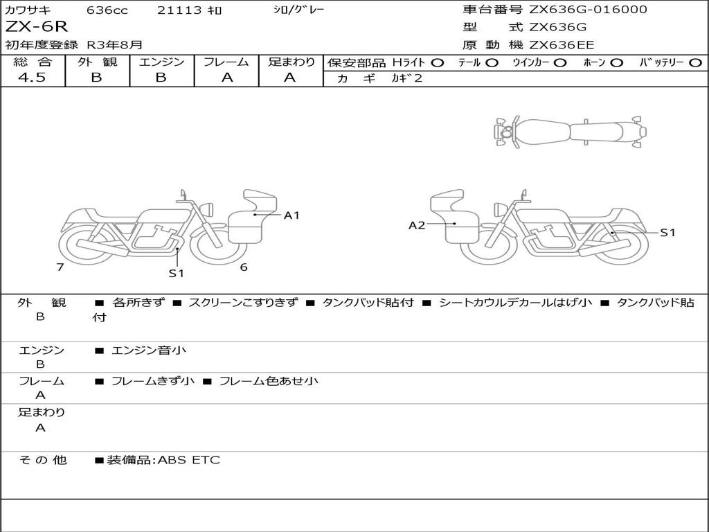 | Номер рамы / VIN | ZX636G-016000 |