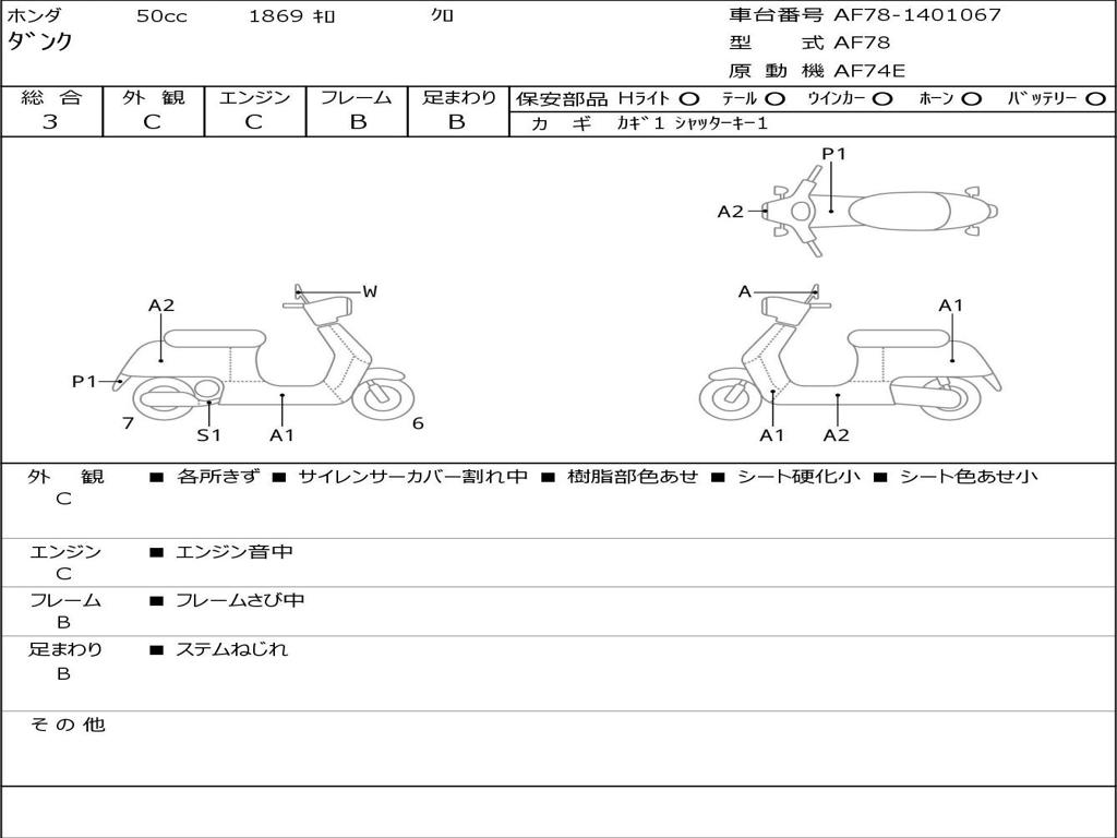 | Номер рамы / VIN | AF78-1401067 |