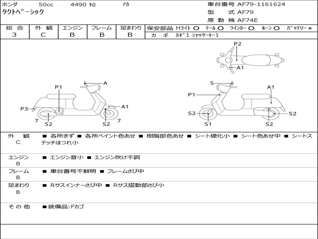 | Номер рамы / VIN | AF79-1161624 |