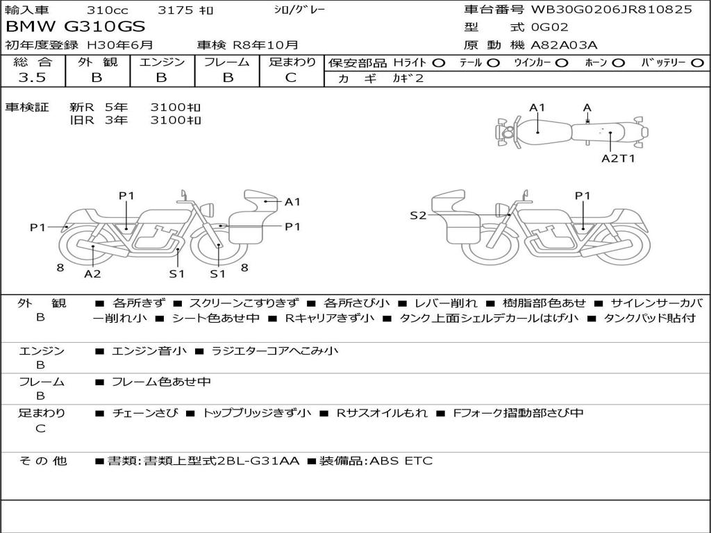 | Номер рамы / VIN | WB30G0206JR810825 |