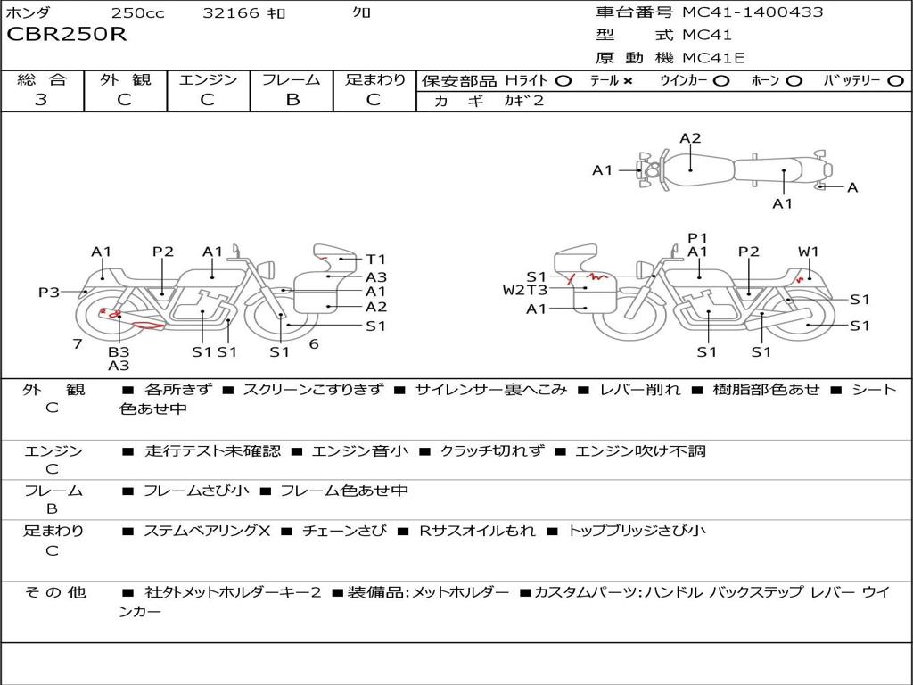 | Номер рамы / VIN | MC41-1400433 |