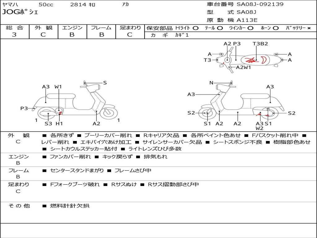 | Номер рамы / VIN | SA08J-092139 |