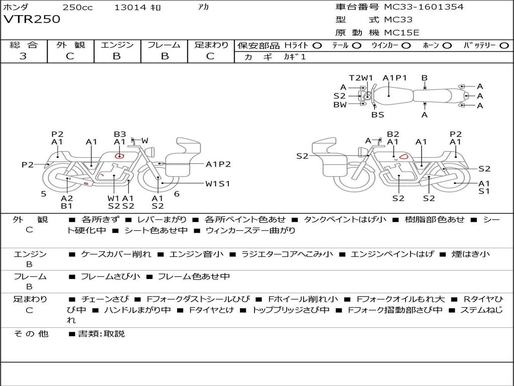 | Номер рамы / VIN | MC33-1601354 |