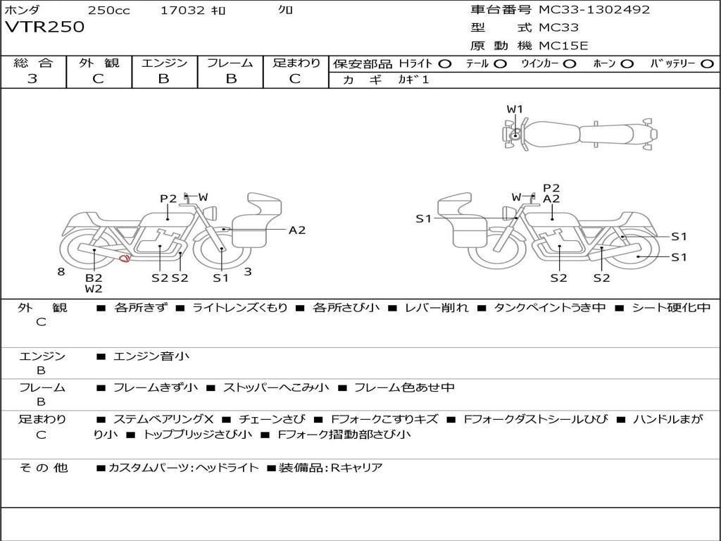 | Номер рамы / VIN | MC33-1302492 |