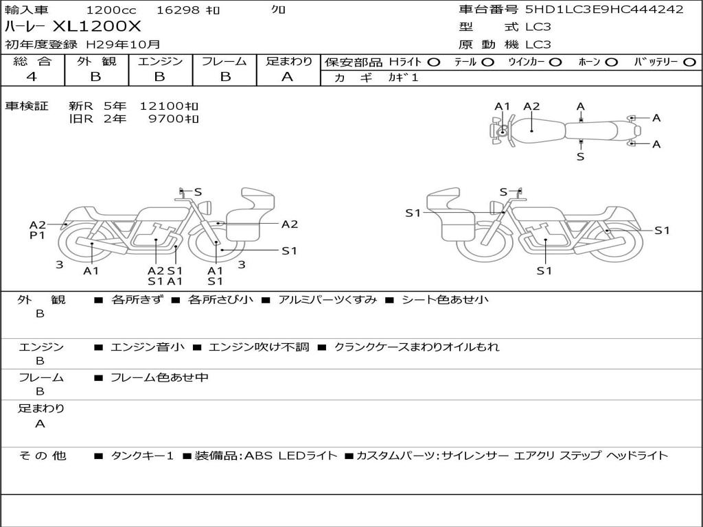 | Номер рамы / VIN | 5HD1LC3E9HC444242 |