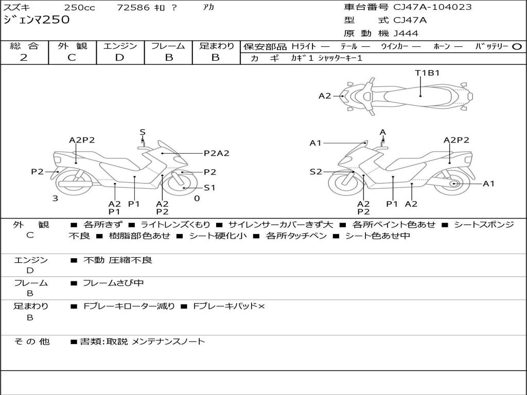 | Номер рамы / VIN | CJ47A-104023 |