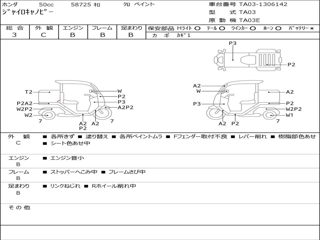 | Номер рамы / VIN | TA03-1306142 |