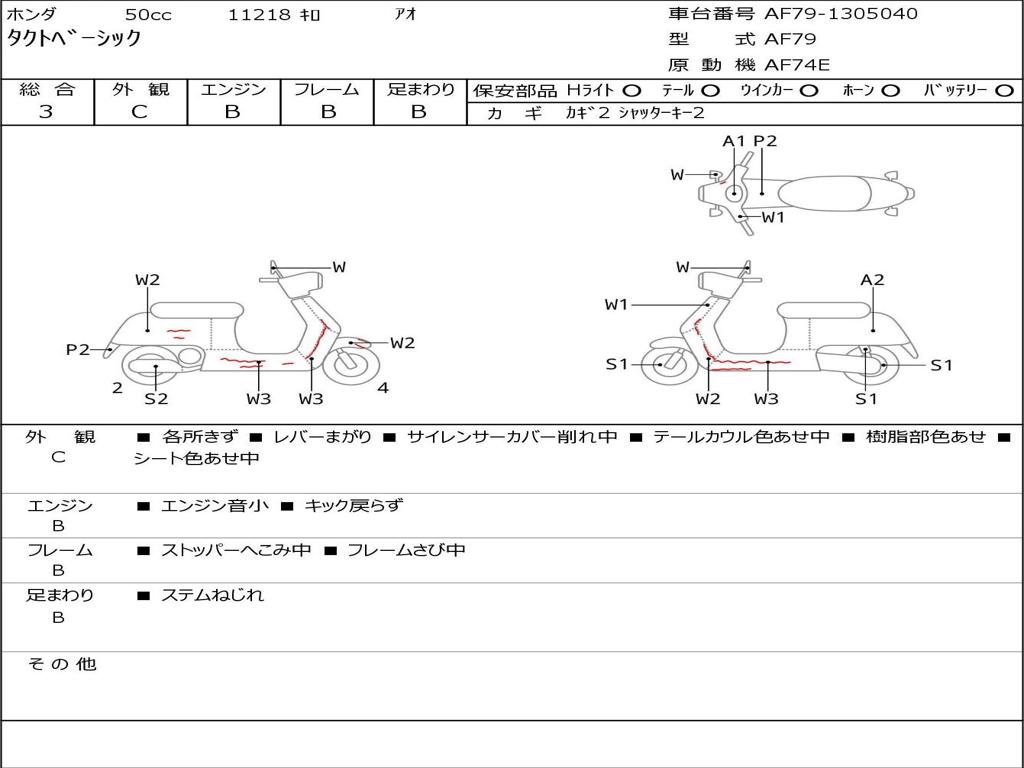 | Номер рамы / VIN | AF79-1305040 |