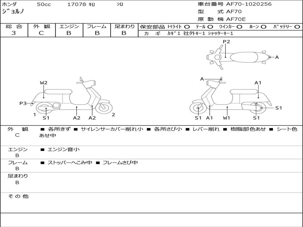 | Номер рамы / VIN | AF70-1020256 |