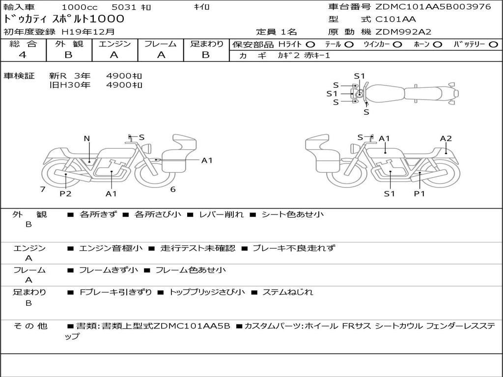 | Номер рамы / VIN | ZDMC101AA5B003976 |