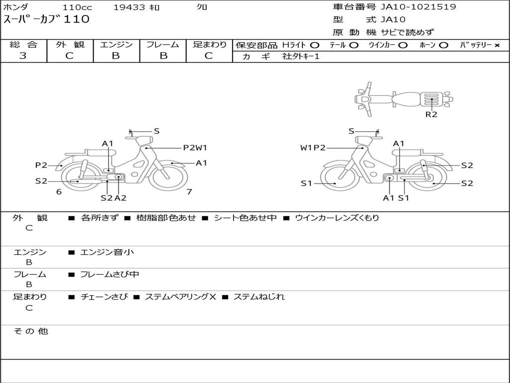 | Номер рамы / VIN | JA10-1021519 |