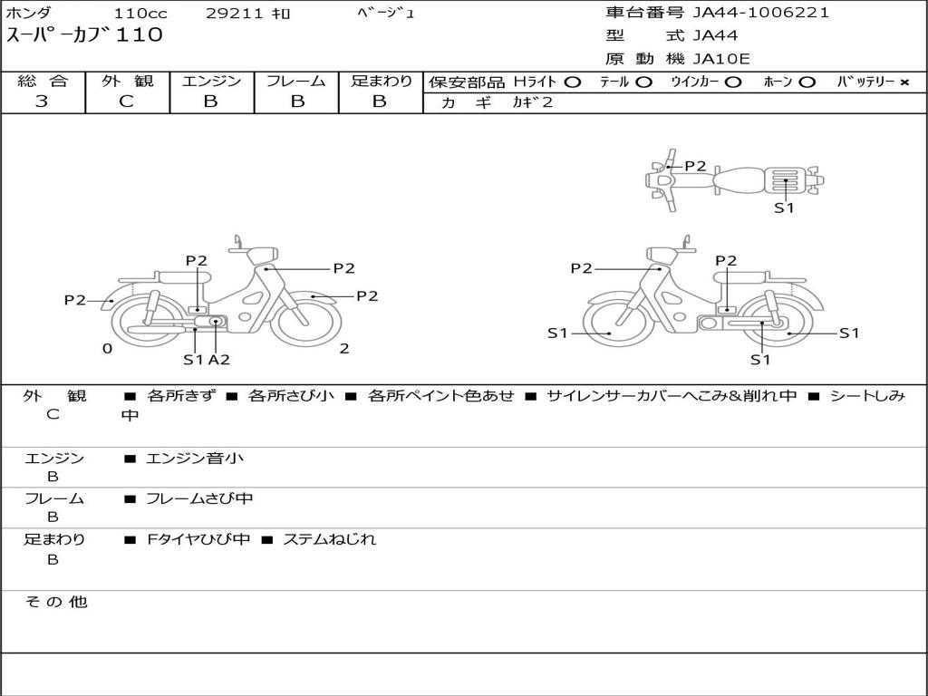| Номер рамы / VIN | JA44-1006221 |