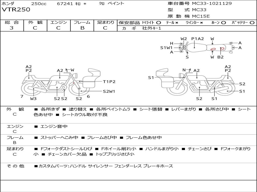 | Номер рамы / VIN | MC33-1021129 |