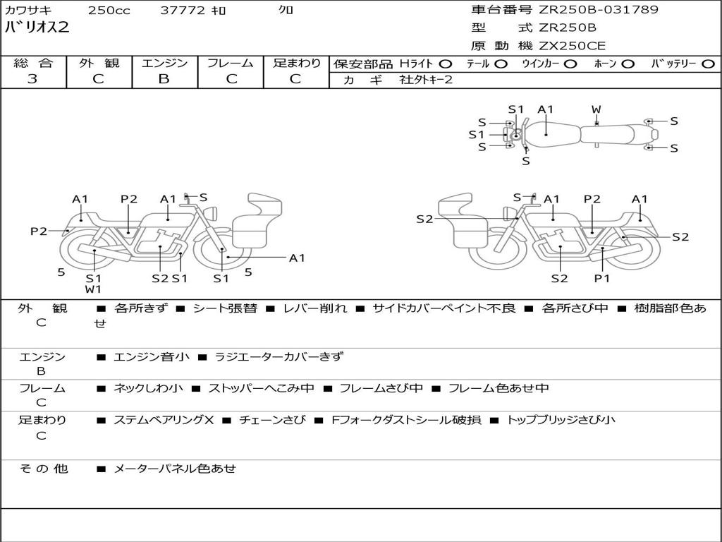 | Номер рамы / VIN | ZR250B-031789 |