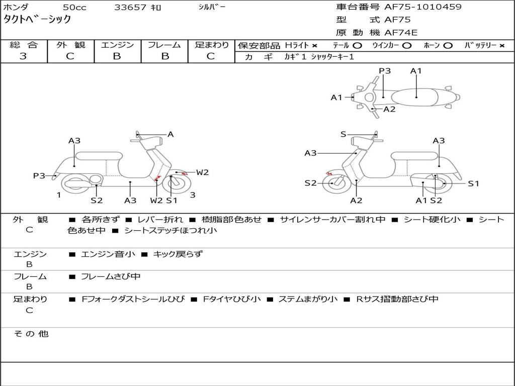 | Номер рамы / VIN | AF75-1010459 |
