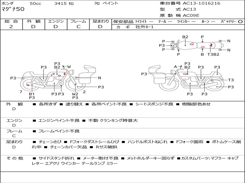 | Номер рамы / VIN | AC13-1016216 |