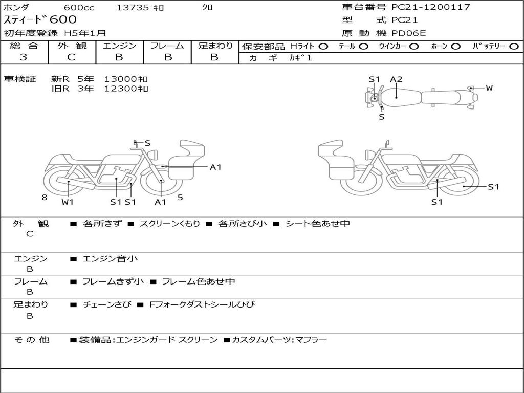 | Номер рамы / VIN | PC21-1200117 |