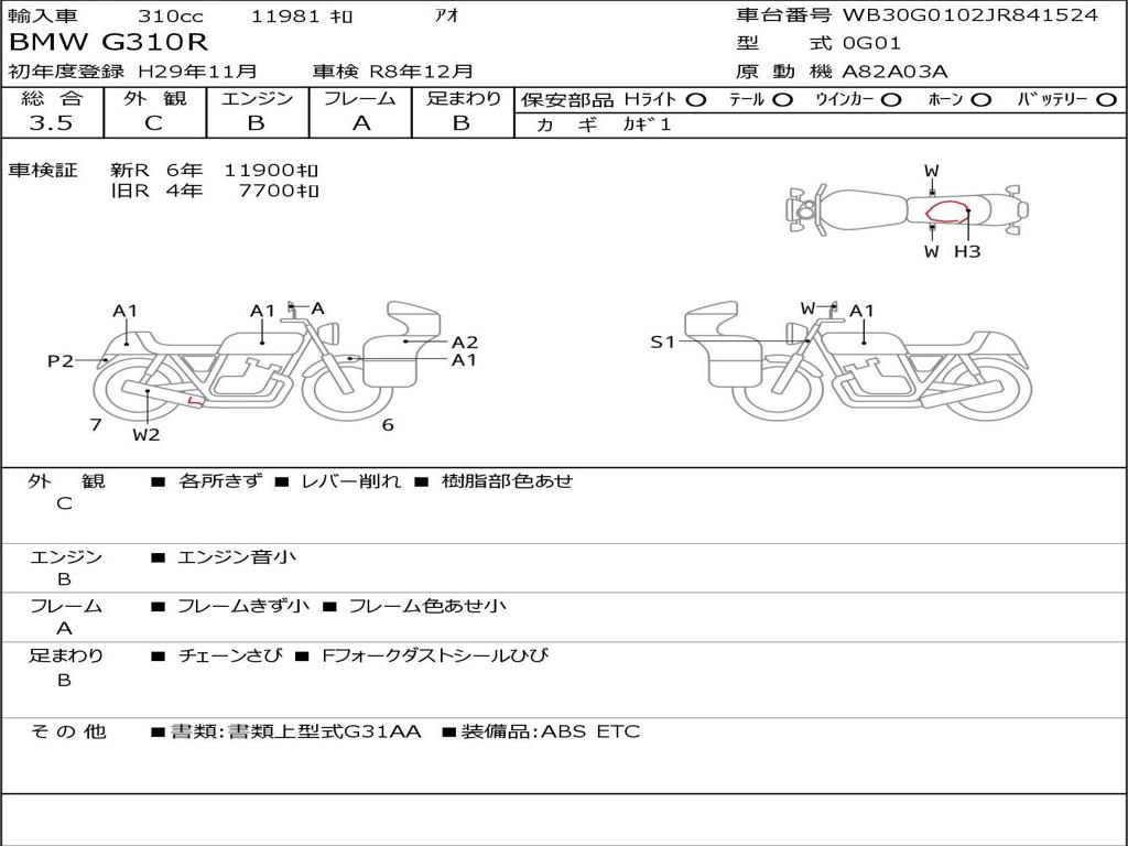 | Номер рамы / VIN | WB30G0102JR841524 |