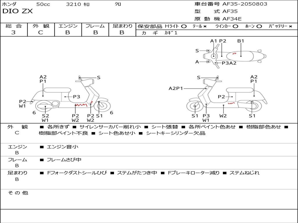 | Номер рамы / VIN | AF35-2050803 |