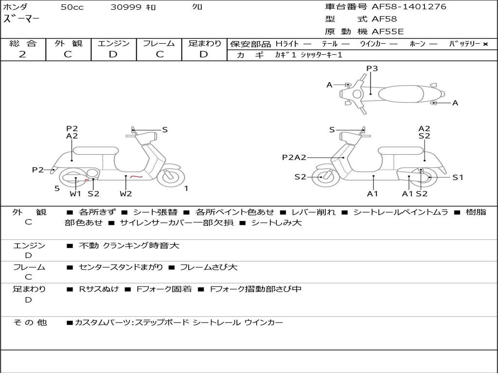 | Номер рамы / VIN | AF58-1401276 |