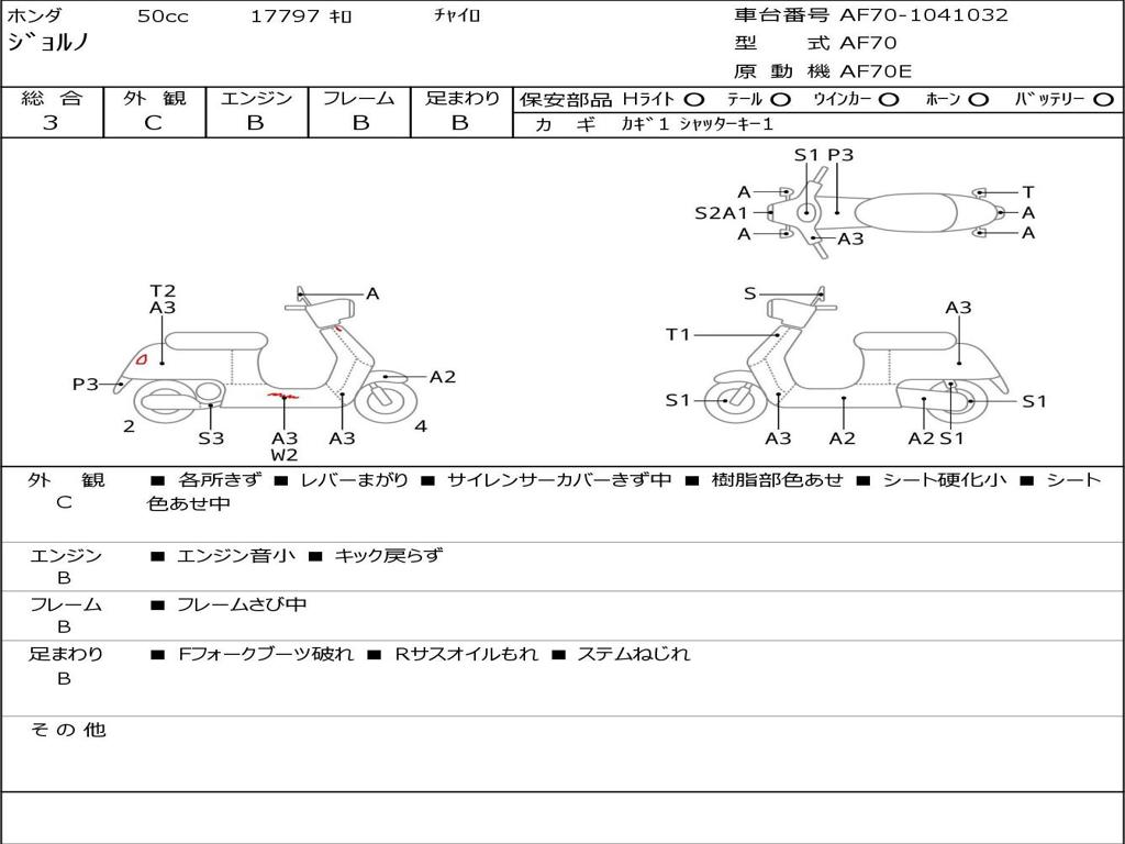 | Номер рамы / VIN | AF70-1041032 |