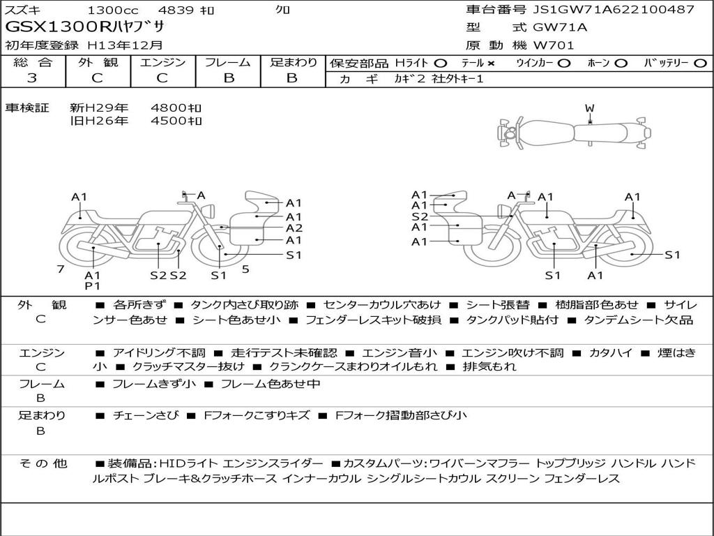 | Номер рамы / VIN | JS1GW71A622100487 |