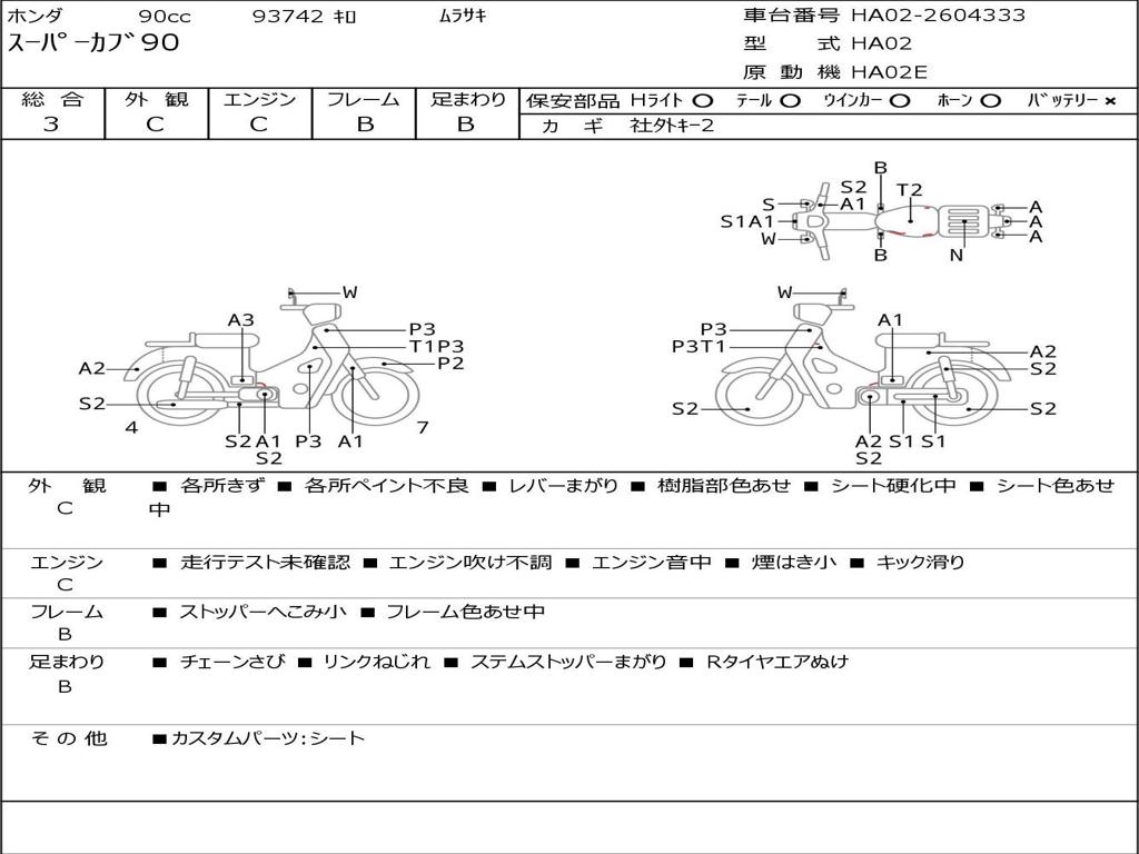 | Номер рамы / VIN | HA02-2604333 |