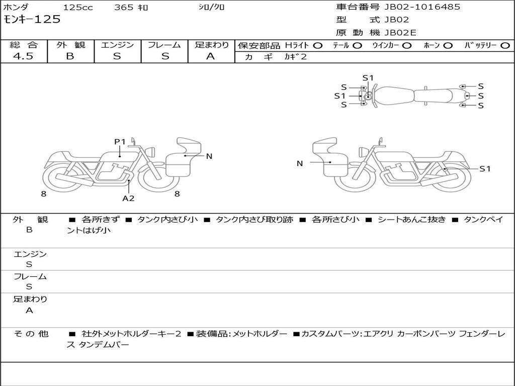 | Номер рамы / VIN | JB02-1016485 |
