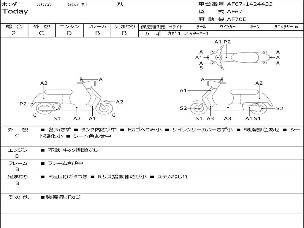 | Номер рамы / VIN | AF67-1424433 |