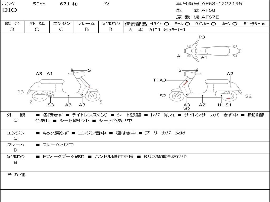 | Номер рамы / VIN | AF68-1222195 |