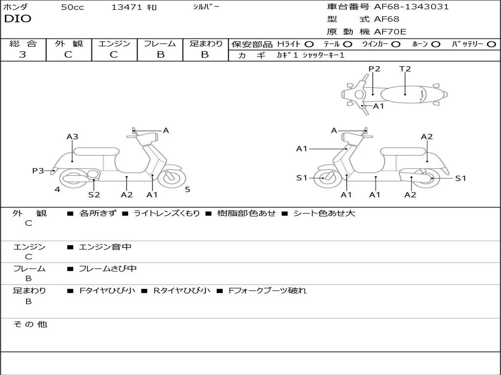 | Номер рамы / VIN | AF68-1343031 |