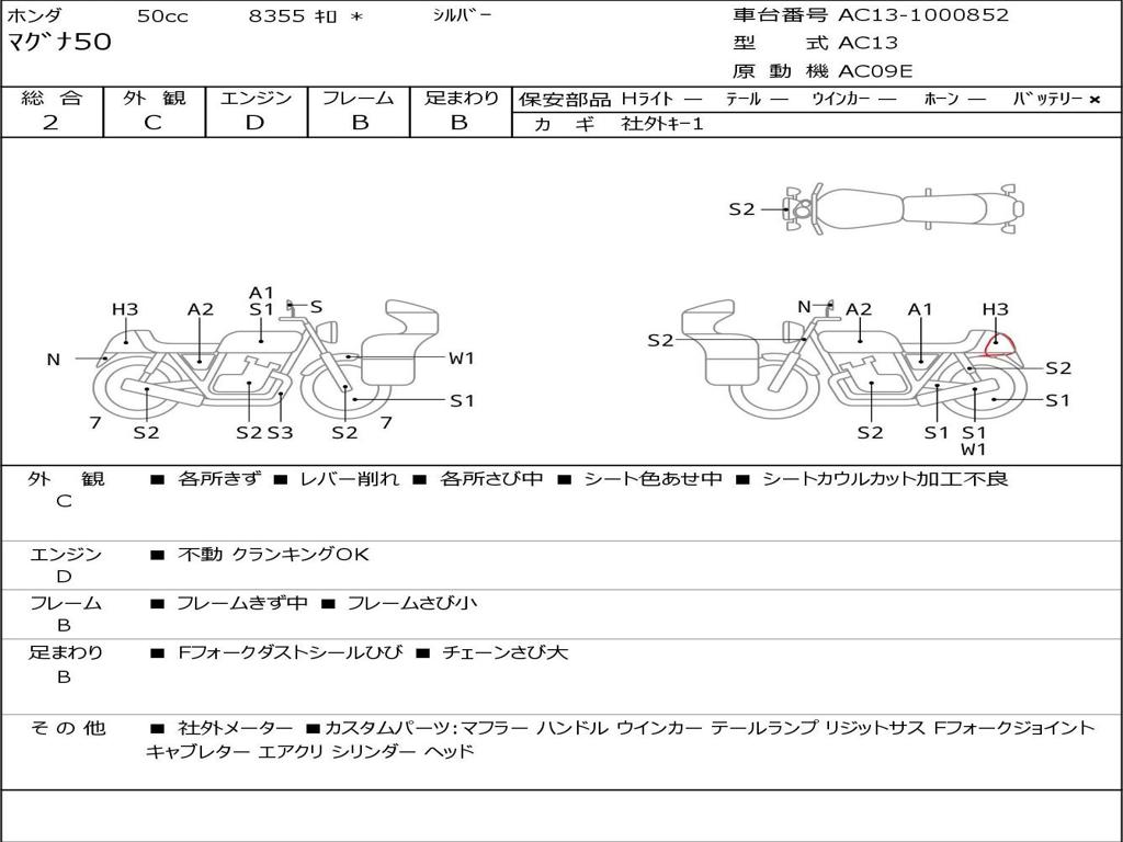 | Номер рамы / VIN | AC13-1000852 |