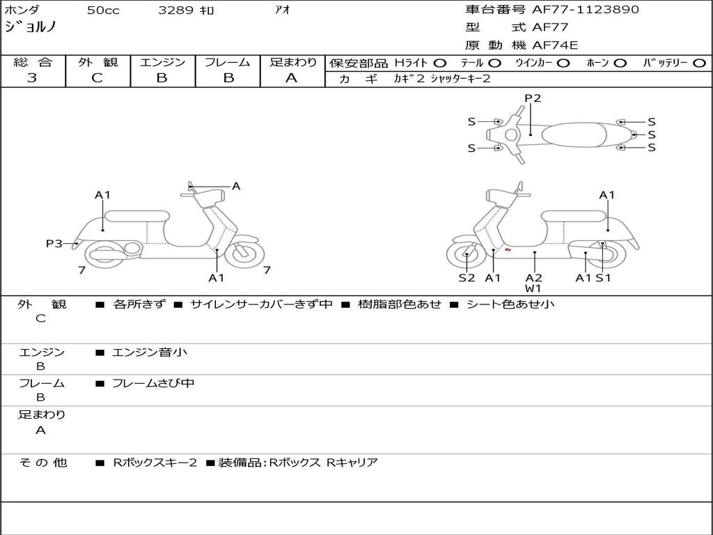 | Номер рамы / VIN | AF77-1123890 |