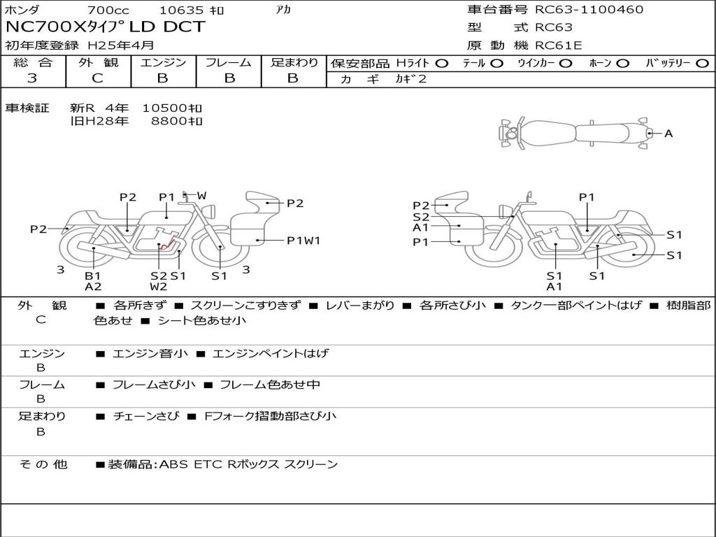 | Номер рамы / VIN | RC63-1100460 |