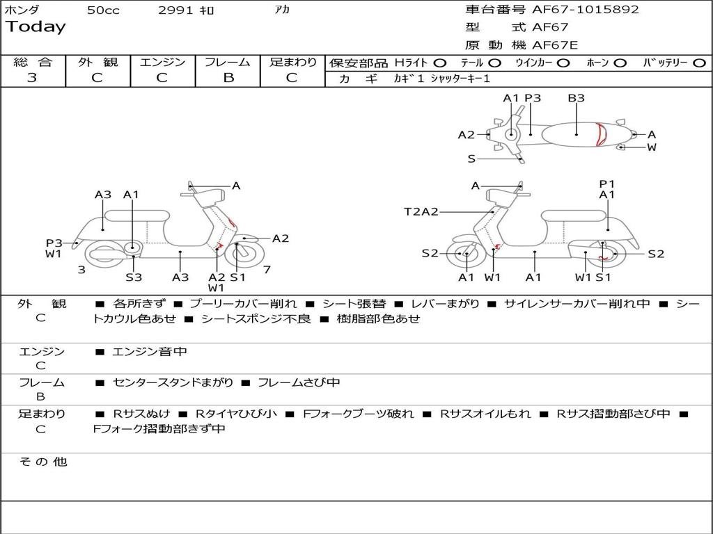 | Номер рамы / VIN | AF67-1015892 |