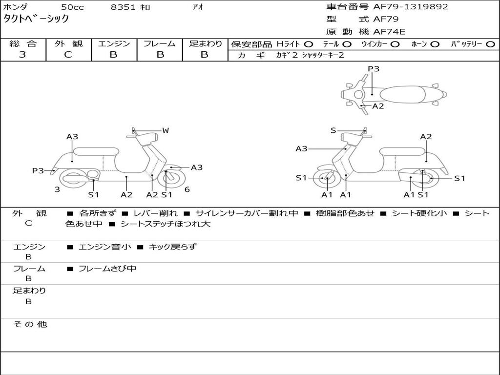 | Номер рамы / VIN | AF79-1319892 |