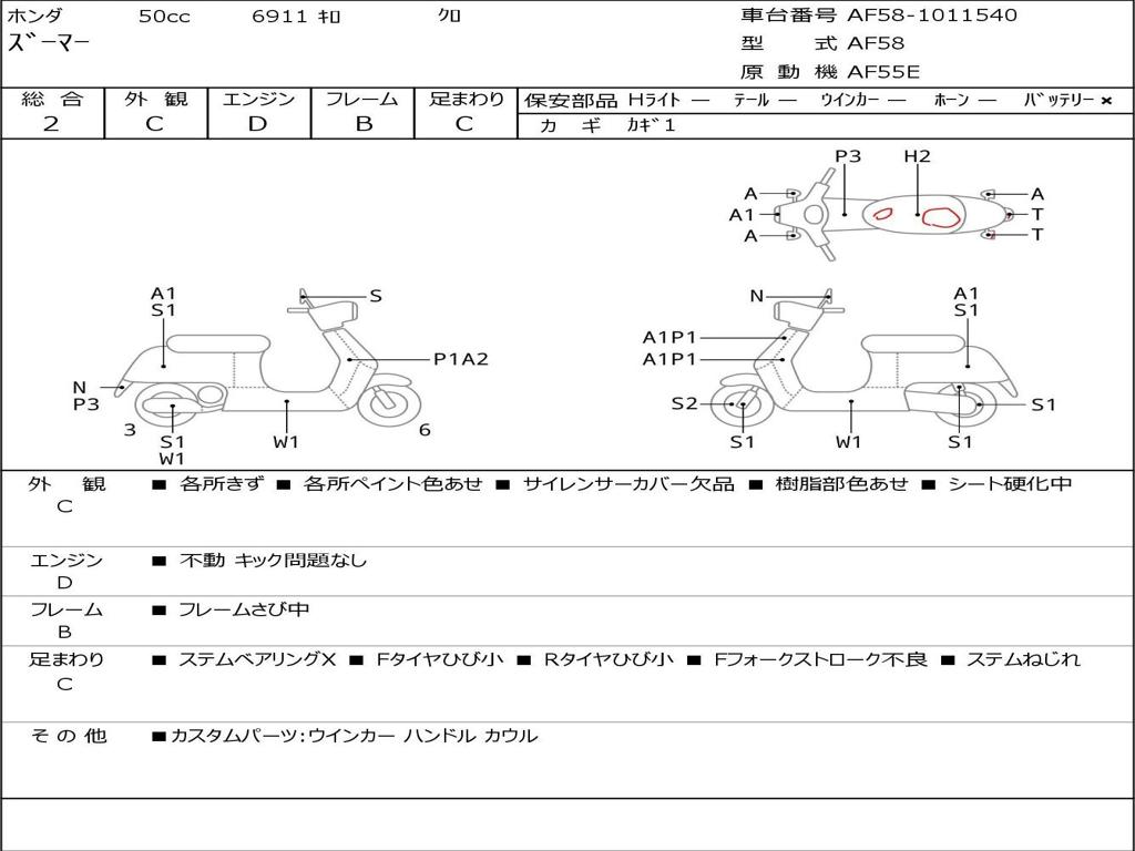 | Номер рамы / VIN | AF58-1011540 |