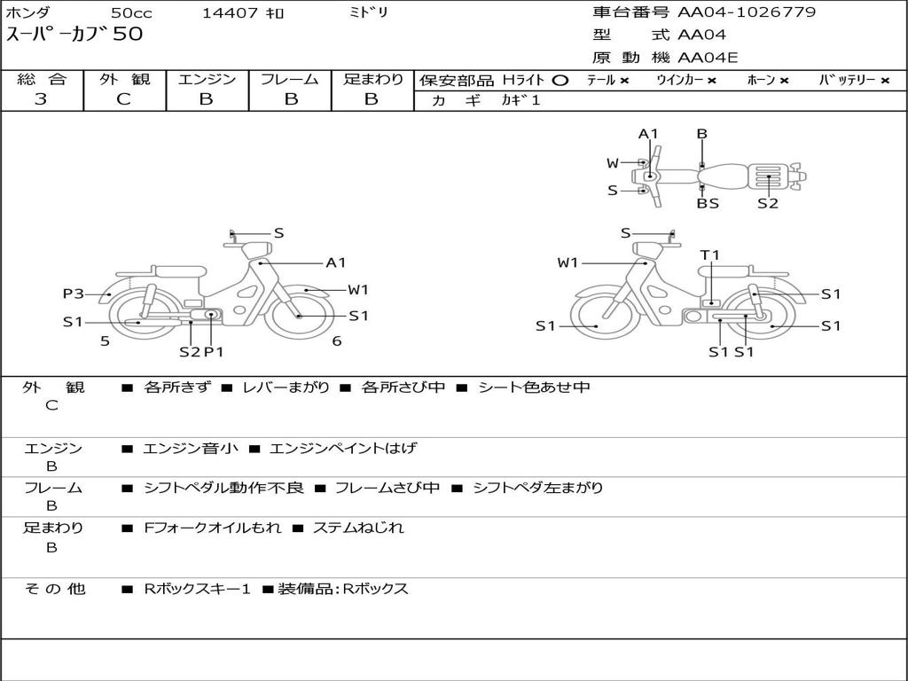 | Номер рамы / VIN | AA04-1026779 |