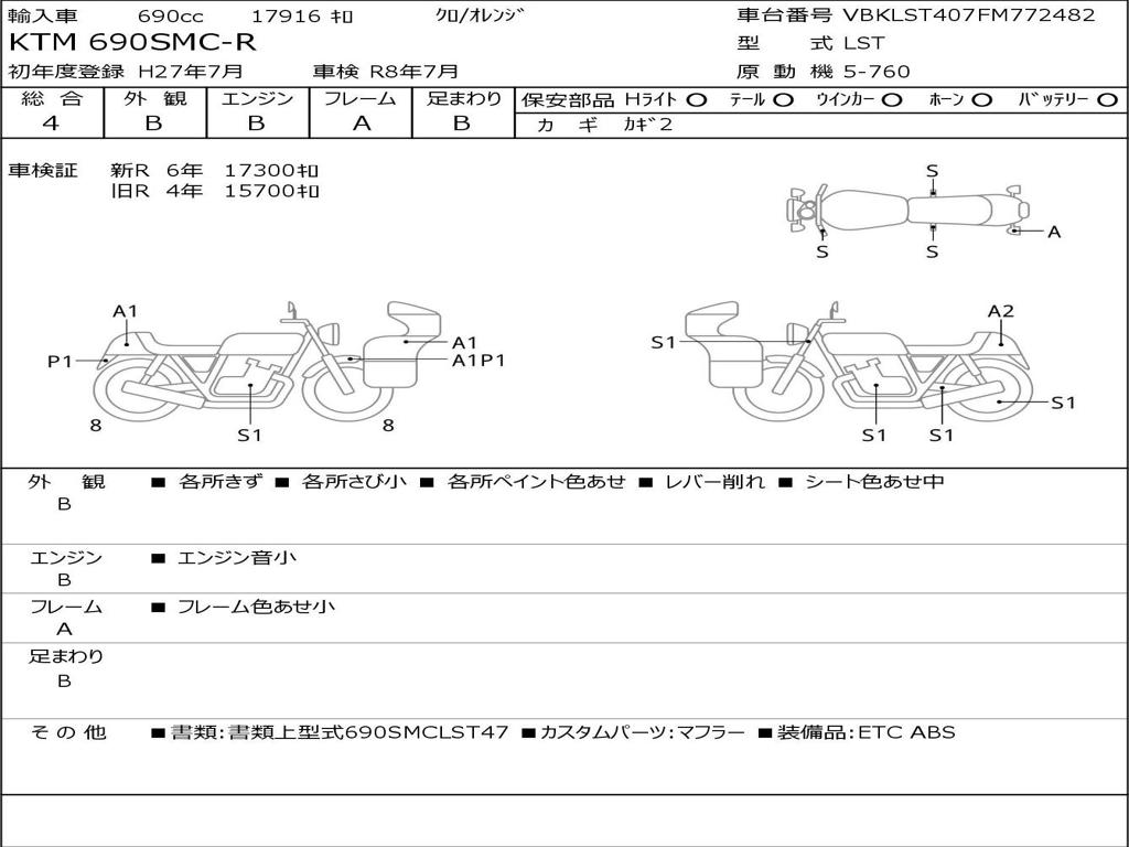 | Номер рамы / VIN | VBKLST407FM772482 |
