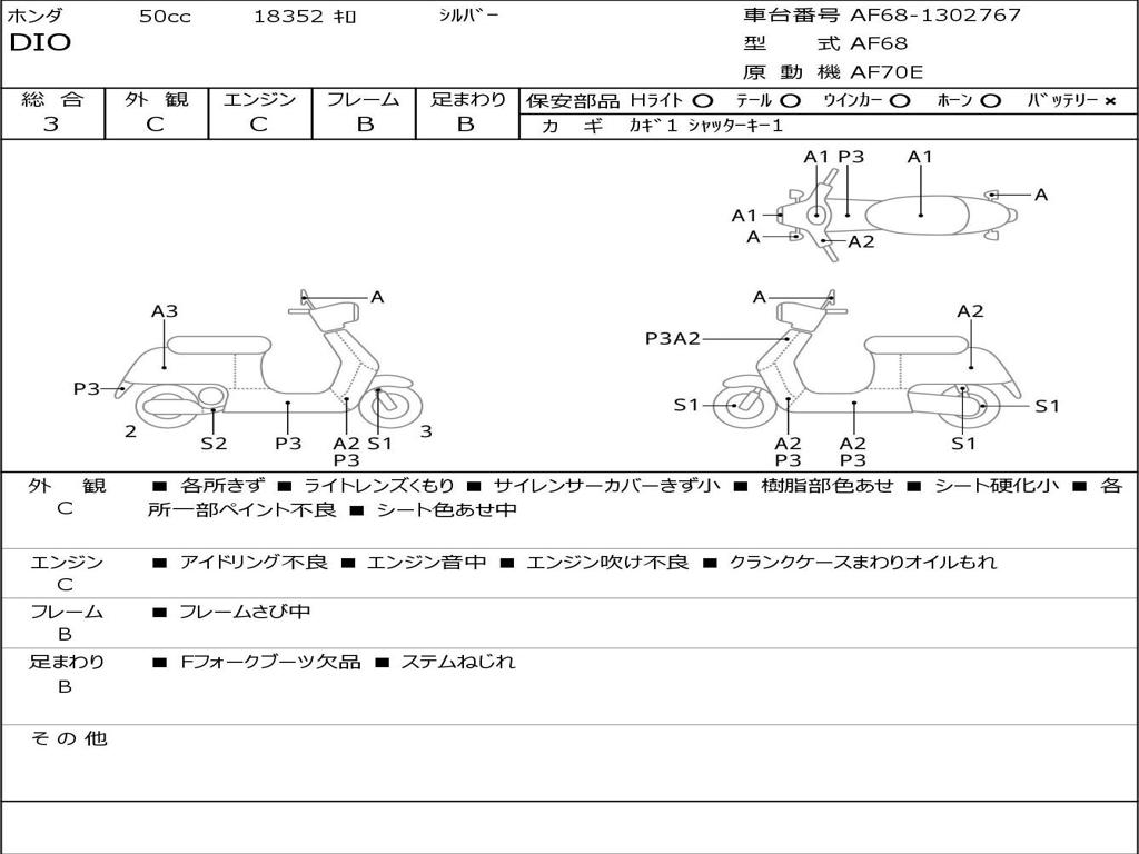 | Номер рамы / VIN | AF68-1302767 |