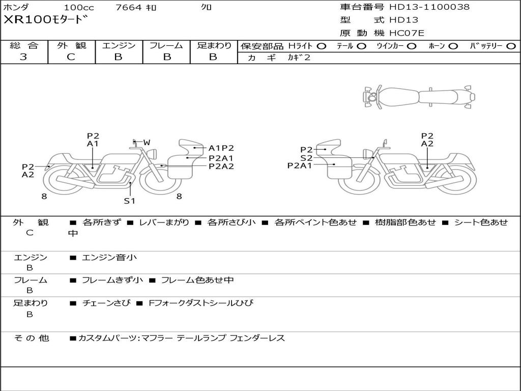| Номер рамы / VIN | HD13-1100038 |