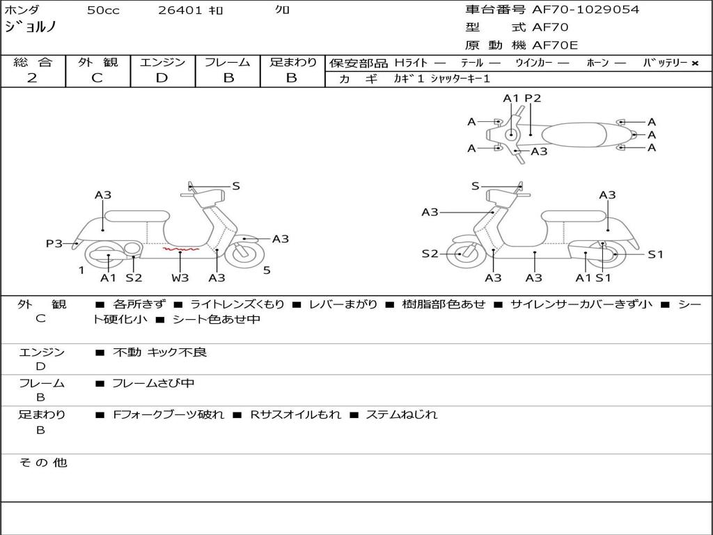 | Номер рамы / VIN | AF70-1029054 |
