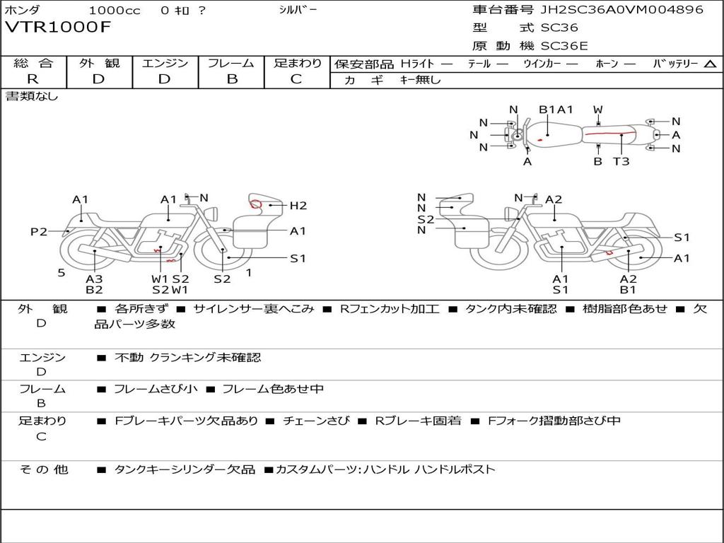 | Номер рамы / VIN | JH2SC36A0VM004896 |