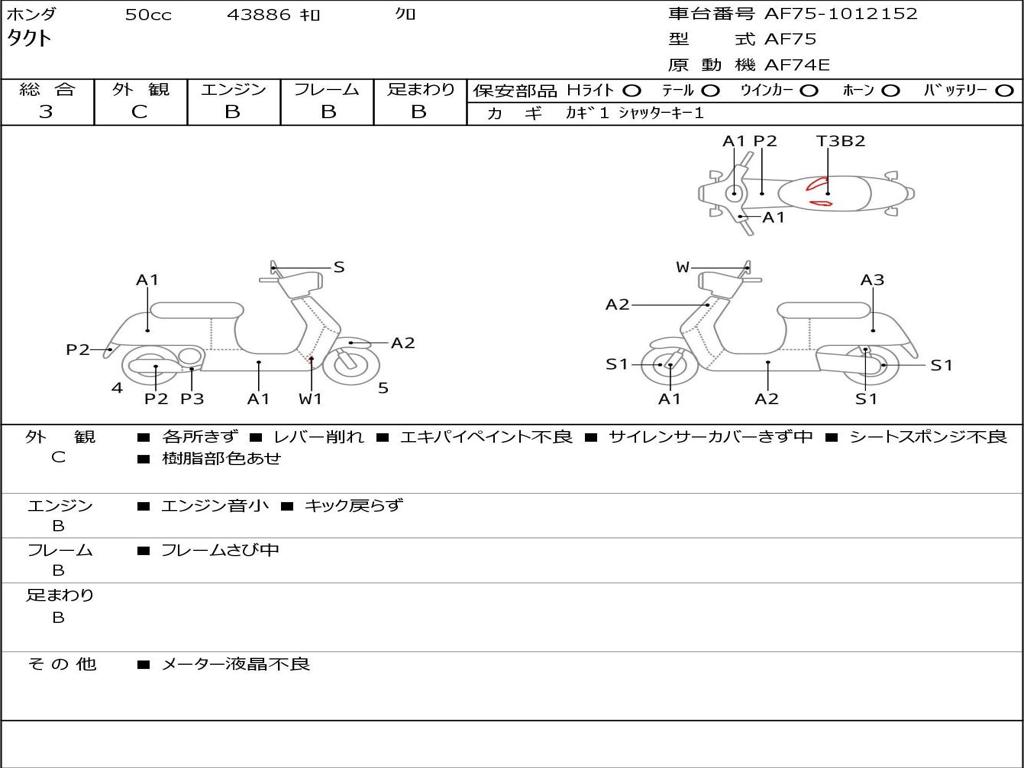 | Номер рамы / VIN | AF75-1012152 |