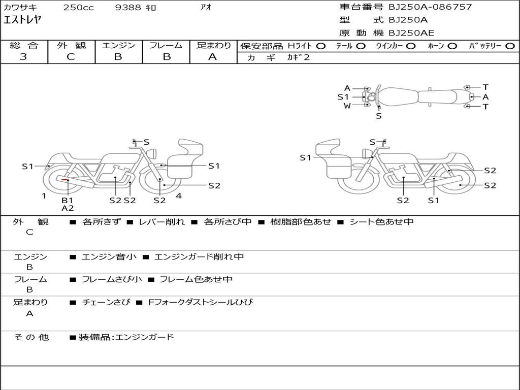 | Номер рамы / VIN | BJ250A-086757 |