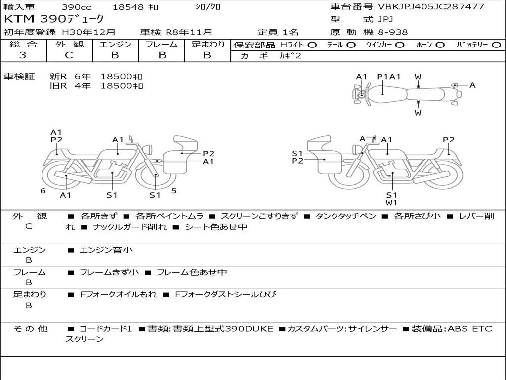 | Номер рамы / VIN | VBKJPJ405JC287477 |