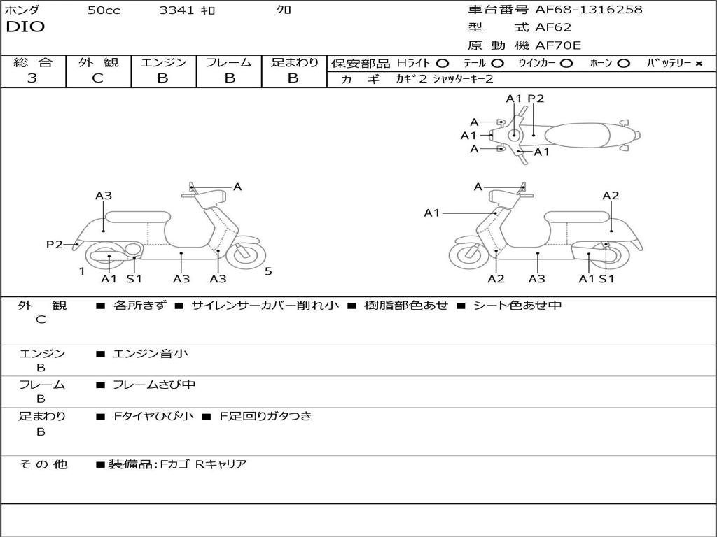 | Номер рамы / VIN | AF68-1316258 |