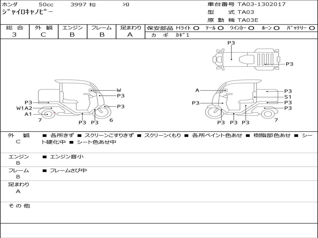 | Номер рамы / VIN | TA03-1302017 |