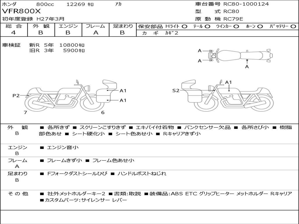 | Номер рамы / VIN | RC80-1000124 |